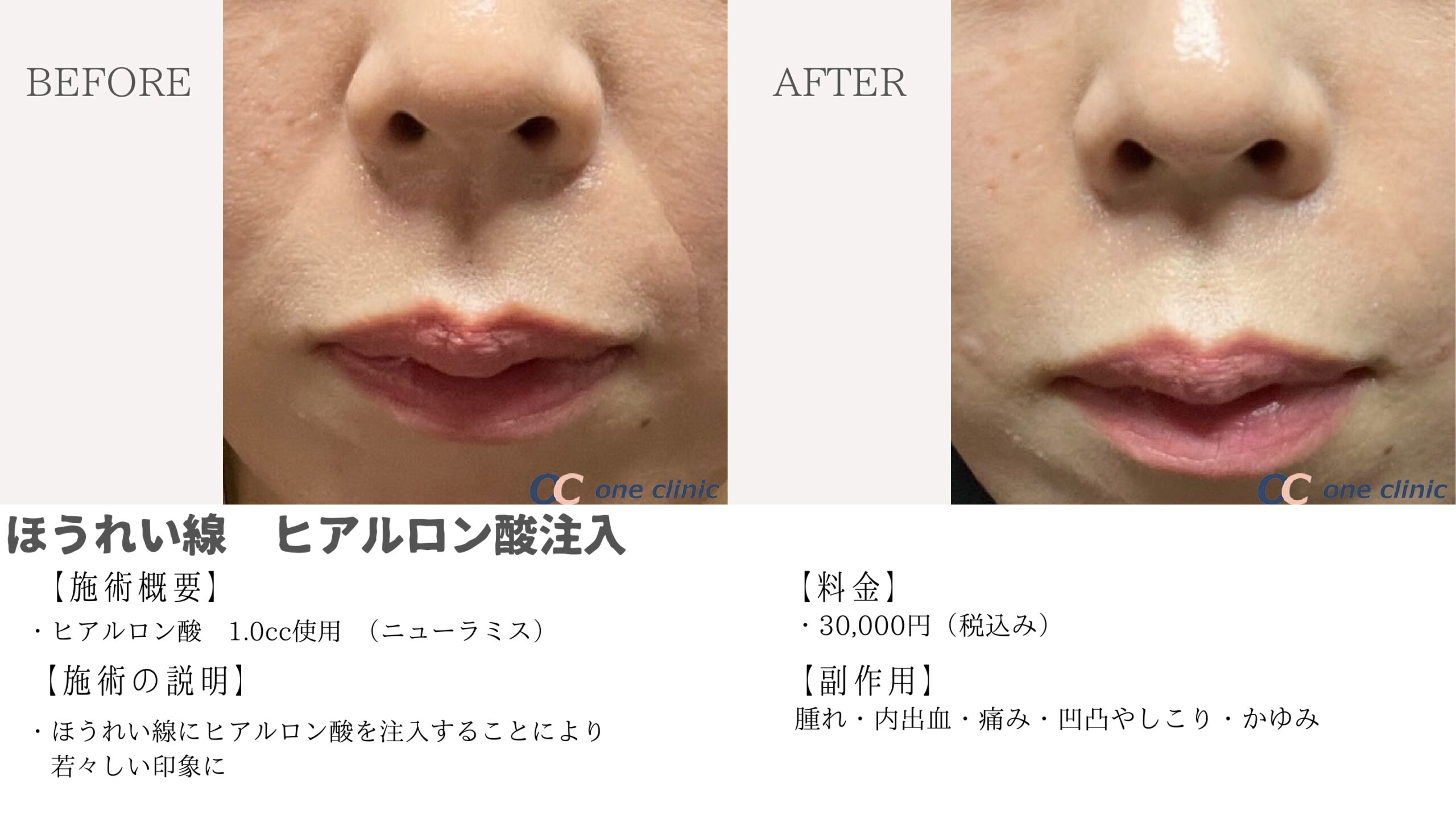 ヒアルロン酸注入の効果を後押しするように筋肉の緊張を和らげシワを寄りにくくします。