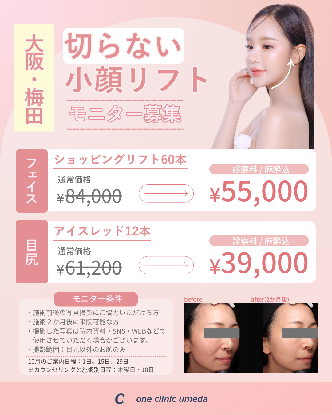 ※カウンセリングと施術、別日程でのご案内:木曜日・18日