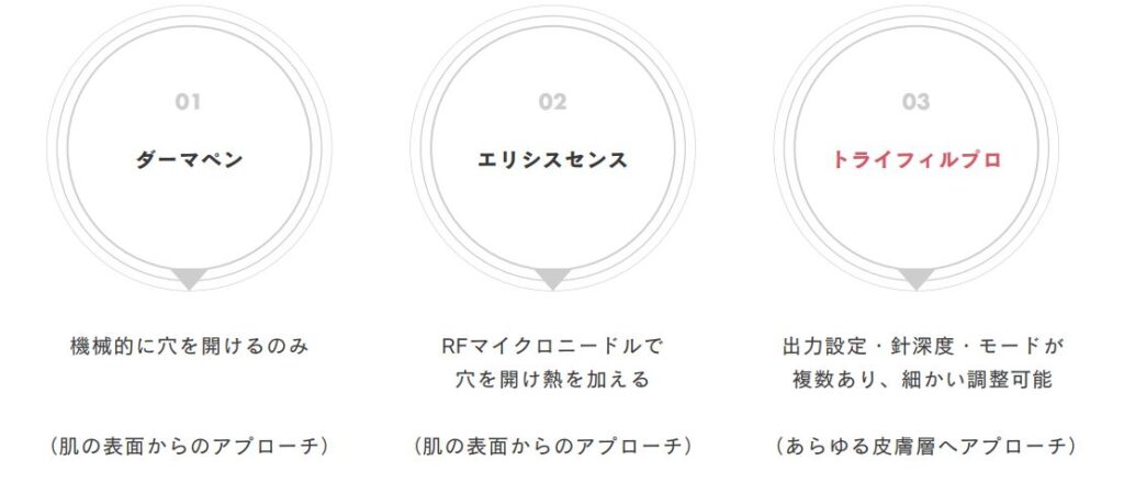 トライフィルプロとサブシジョンは、いずれも肌の凹凸改善を目的としていますが、施術内容が異なります